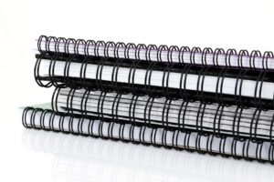 - Wire-o binding: This binding technique is also known as twin-loop or double-loop wire binding, in which a double-loop wire is inserted through holes punched along the edges of the pages and crimped.